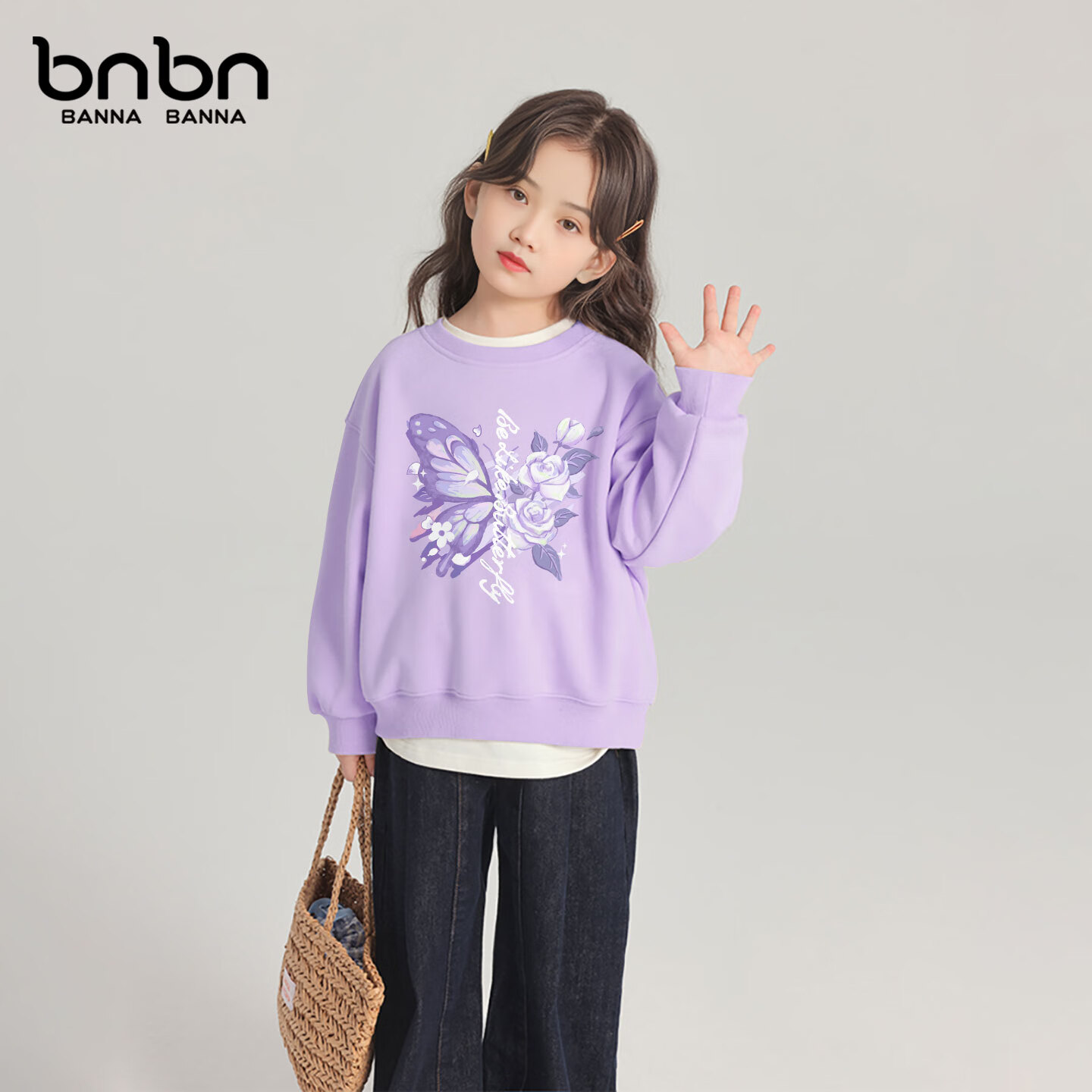 班纳班纳童装儿童卫衣套装2025新款秋季运动潮流宽松女童休闲裤男童上衣 N彩蝶香芋紫 160