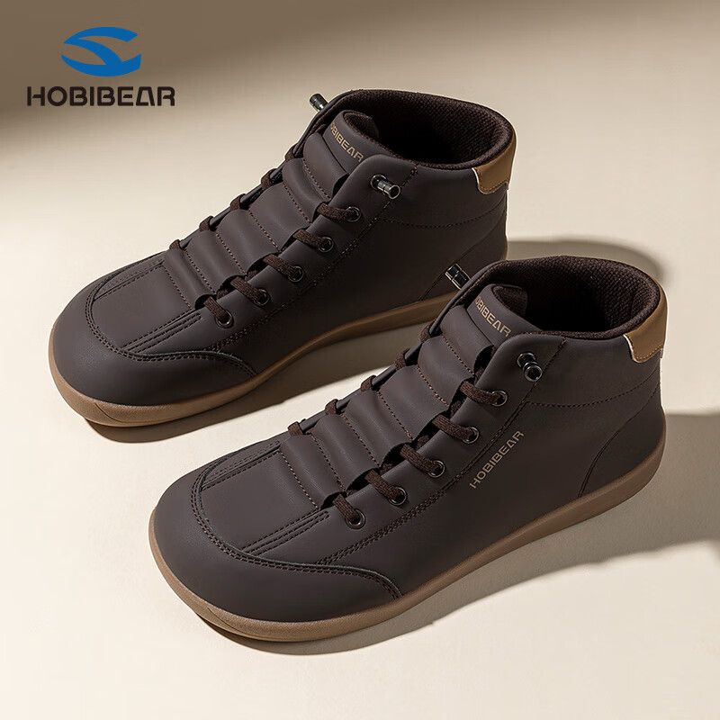 HOBIBEAR高帮赤足鞋宽楦男女同款秋季运动宽头训练男士健身平步鞋 深棕 44