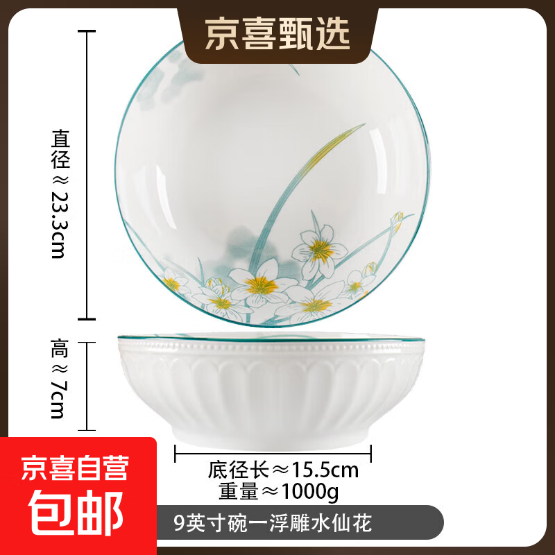 厨房家用9英寸汤盆水煮鱼专用大碗酸菜鱼陶瓷大汤碗新款餐具组合 水仙花9英寸汤碗 1件套