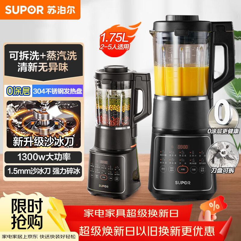 苏泊尔(SUPOR)破壁机 1.75L家用多功能可拆洗早餐豆浆机破冰碎冰榨汁机冰沙机搅拌机辅食机 SP605R