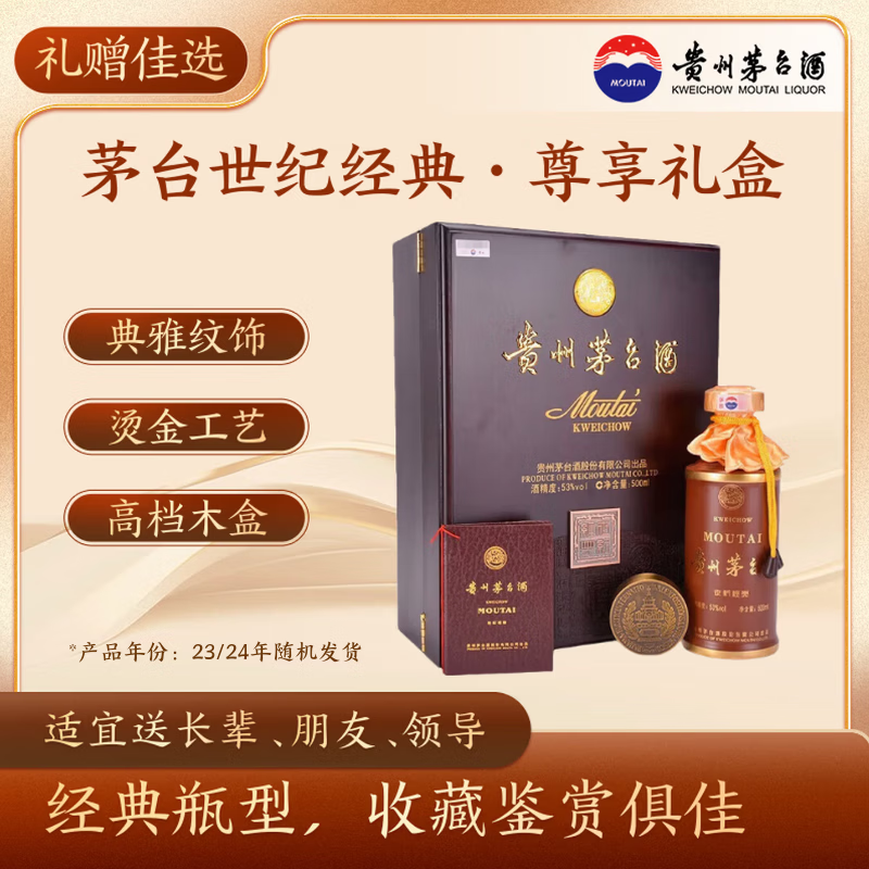 茅台世纪经典 酱香型白酒 53度 500ml 礼盒装【热门商品】