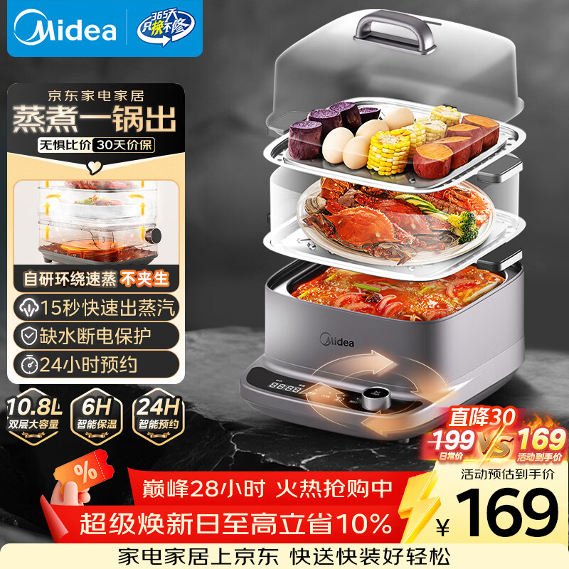 美的(Midea)电蒸锅电热锅多功能蒸蛋锅家用电煮锅电火锅炖蒸涮煮一体机3层大容量不锈钢蒸箱 MZ-ZGE2323ZD2