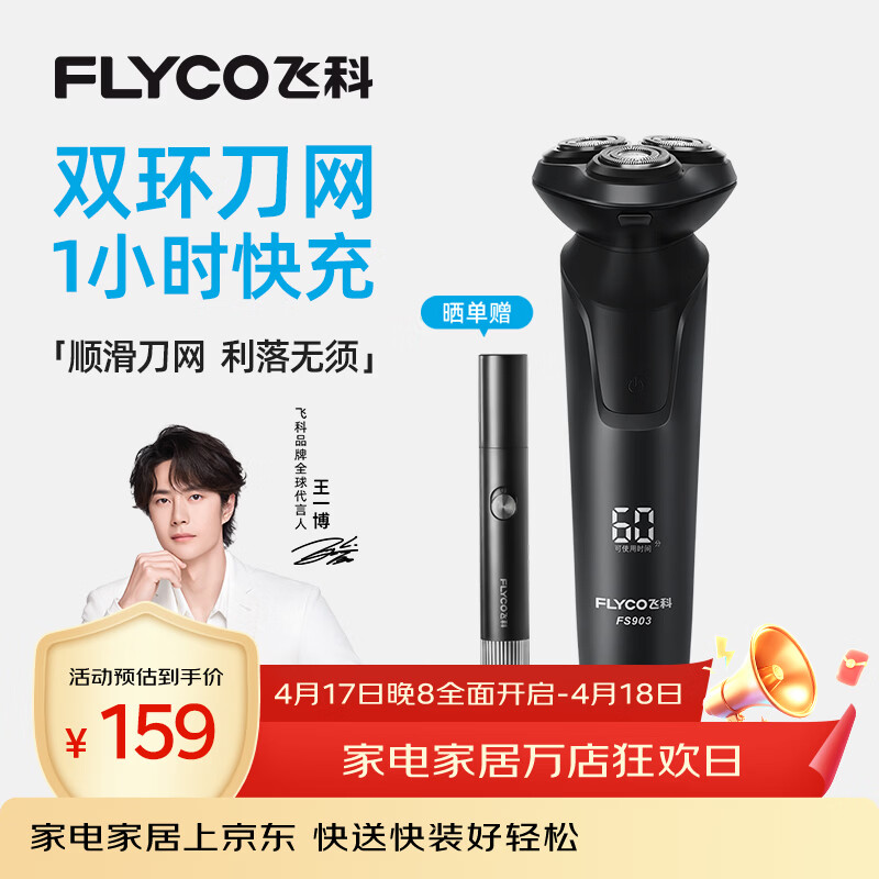 飞科(FLYCO)剃须刀电动刮胡刀全身水洗智能充电式胡须刀生日礼物送男朋友父亲礼品 FS903标配【带鬓角刀】