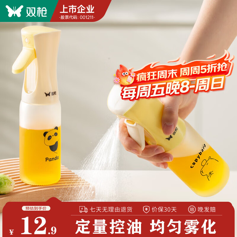 双枪雾化喷油壶定量控油家用食品级酱油醋油壶厨房家用不挂油喷油瓶 【萌趣熊猫】强雾化喷油壶-1支