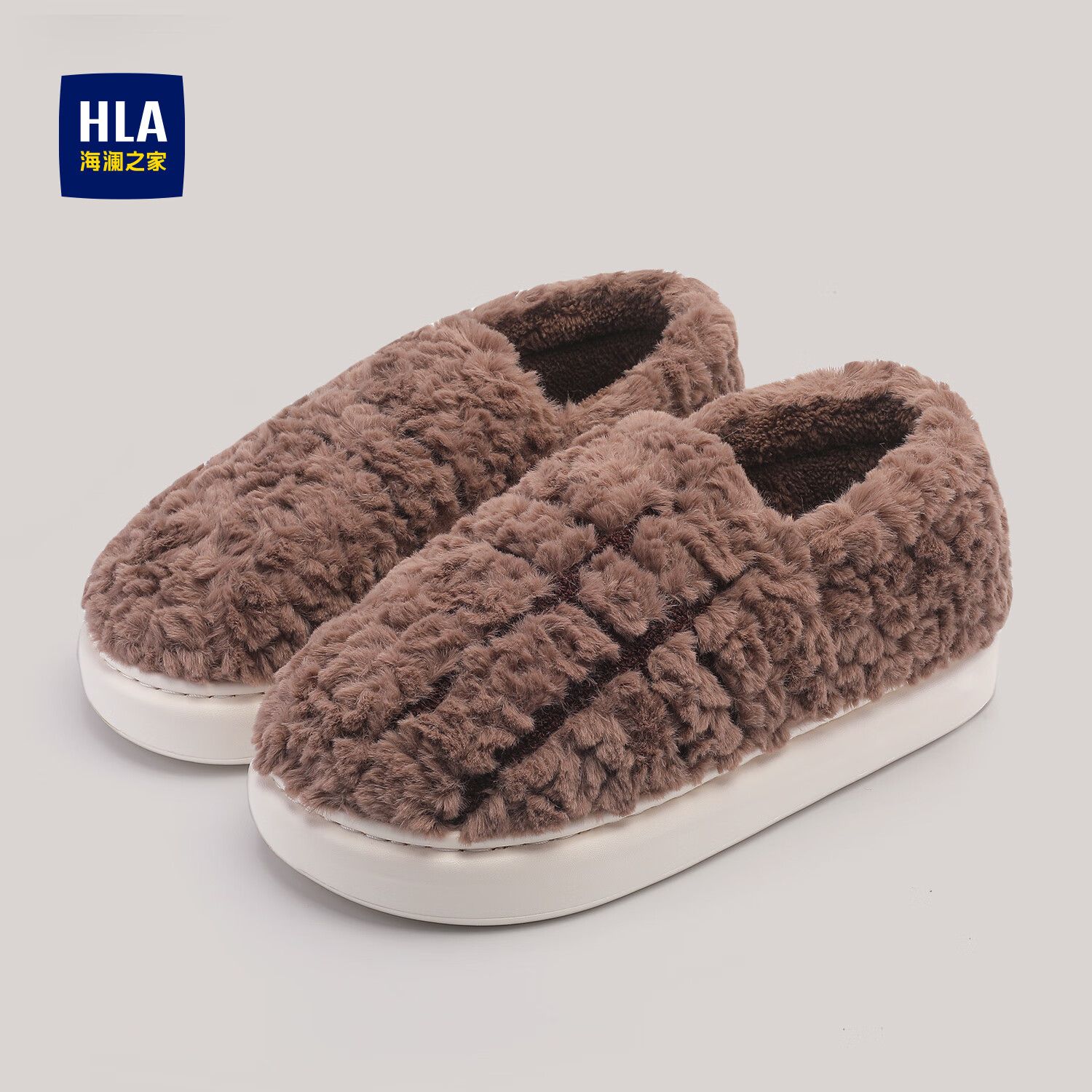 海澜之家(HLA)条纹男士棉拖鞋秋冬季室内家居家加厚毛绒厚底保暖情侣包根棉拖鞋 深棕色 40-41 【适合39-40码脚】