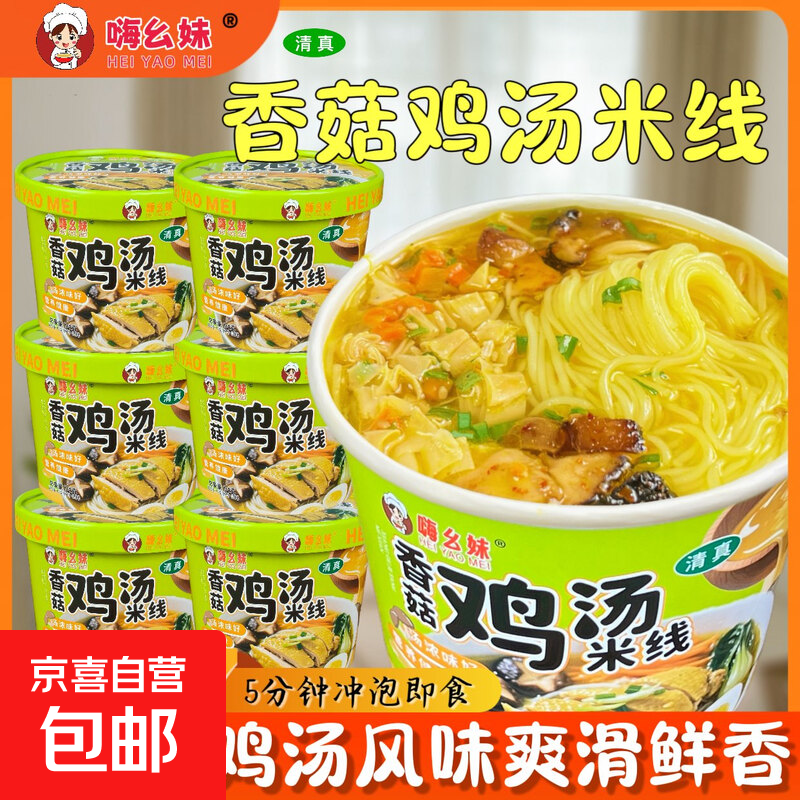 嗨幺妹香菇鸡汤米线香辣牛肉米线清真鲜汤桶装吸汁粉丝速食追剧 鸡汤米线72g*8桶