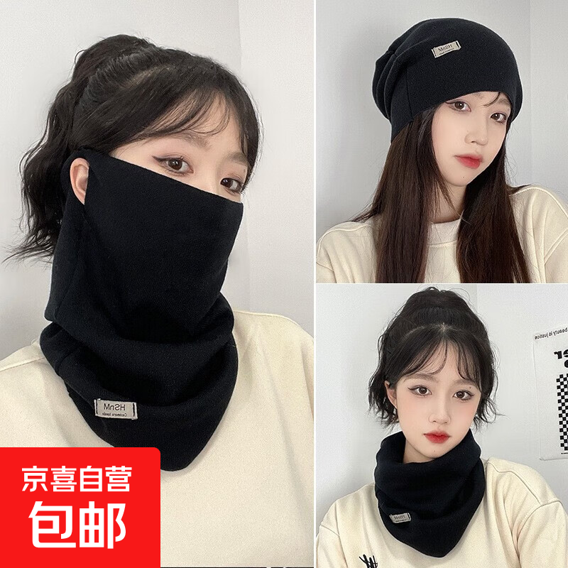 防风秋冬季围脖女士百变挂耳面罩保暖护颈脖套百搭围巾骑车男口罩 【2条装】黑色+米色多功能防护