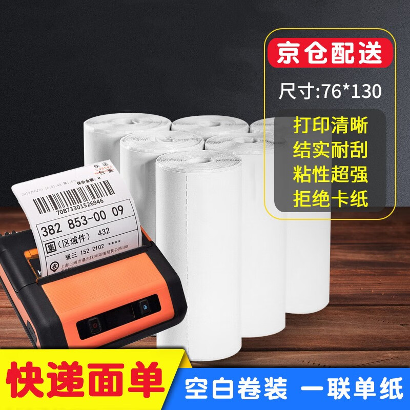 包贝勒快递面单纸打印纸76*130空白一联单三防热敏打印标签纸菜鸟驿站不干胶便携卷纸折中通圆通申通韵达 卷装/空白一联单50张/5卷