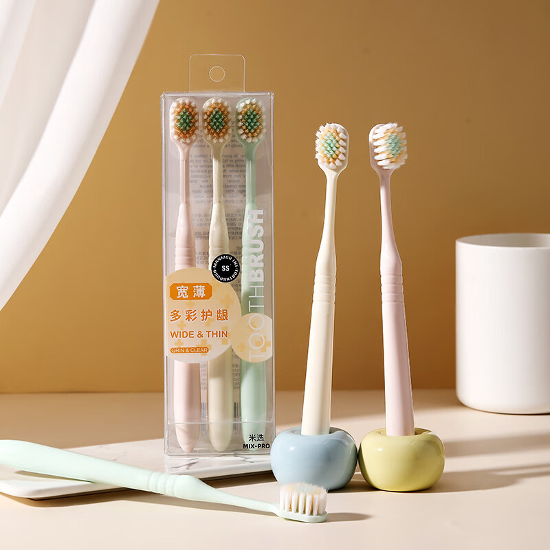 RAOYI成人软毛护龈护齿宽薄头牙刷 【三重刷毛+护齿软毛】 3支