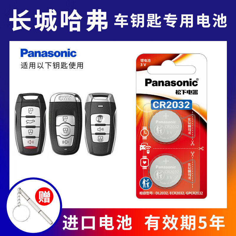 松下(Panasonic) CR2032适用长城哈弗H6 H2s H7 H8 H9 M6 F5 F7汽车钥匙遥控器电池 CR2032【2粒装】
