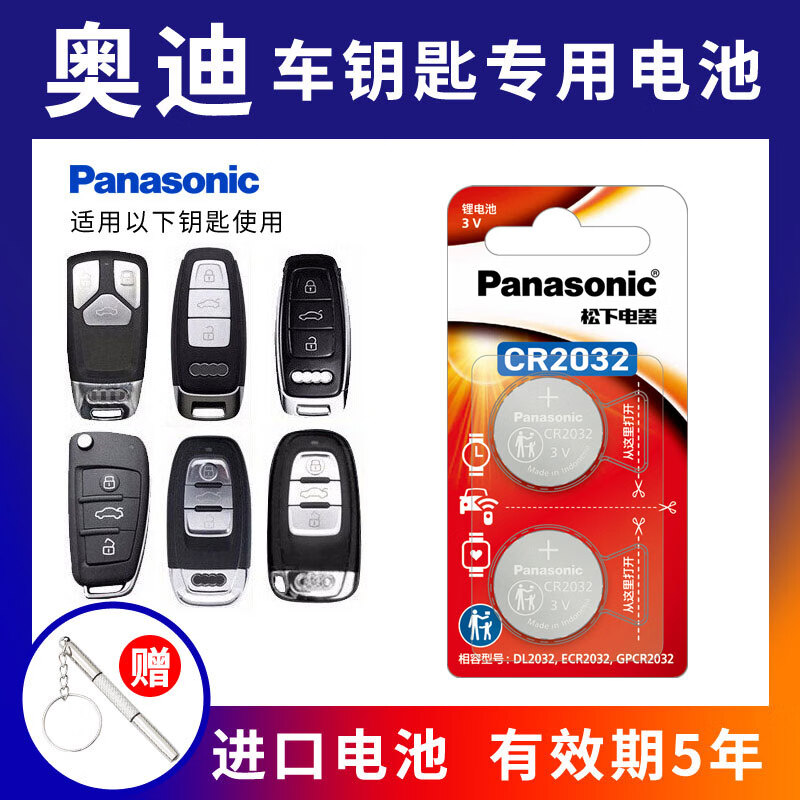 松下(Panasonic)CR2032适用于奥迪A3 A4L A5 A6L A8L Q3 Q5L Q7汽车钥匙遥控器电池 CR2032【2粒】