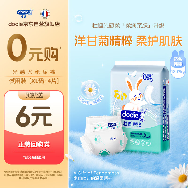 dodie杜迪【试用装4片】光感柔婴儿纸尿裤新生儿尿不湿XL码男女宝通用