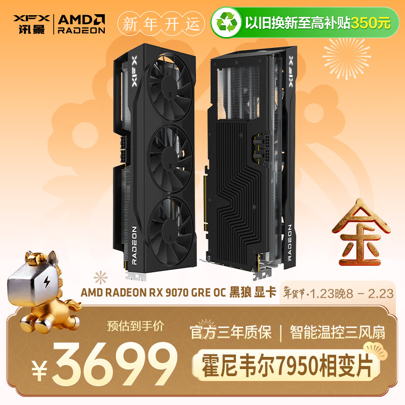 讯景(XFX)AMD RADEON RX 9070 GRE OC 黑狼 12GB 全新电竞游戏设计智能学习台式电脑独立显卡