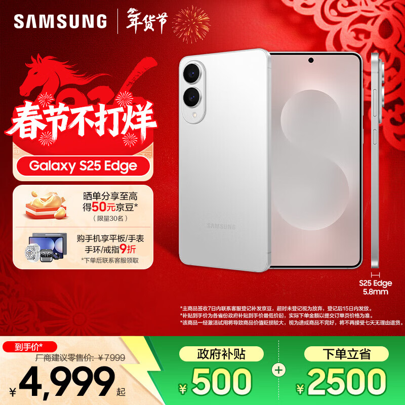 三星(SAMSUNG)Galaxy S25 Edge 5.8mm纤薄机身 IP68耐用设计 骁龙8至尊版 2亿像素拍照旗舰AI手机 钛银 12GB+256GB 官方标配