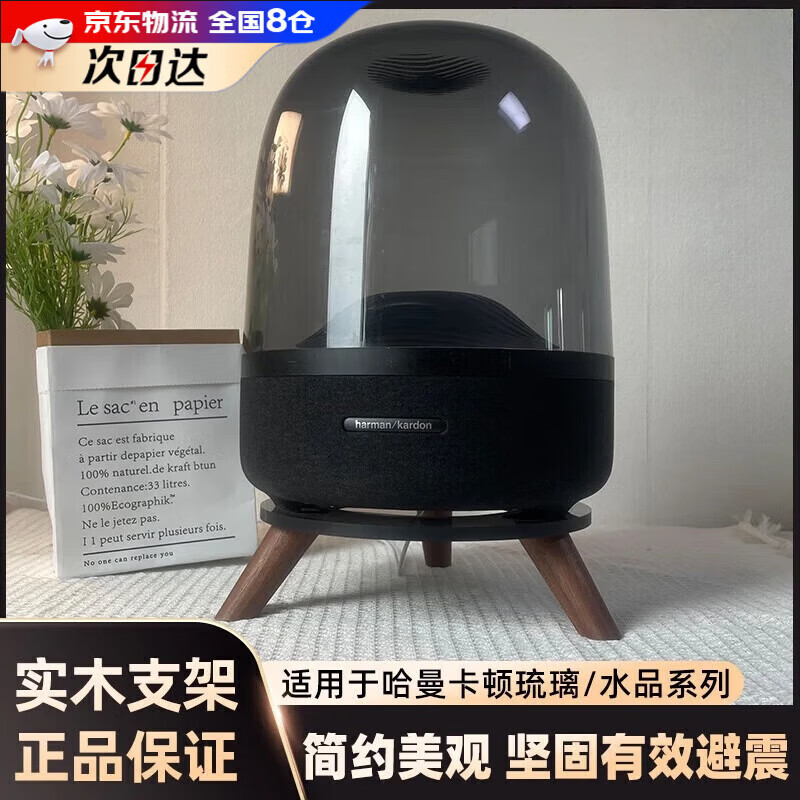 鹏境哈曼卡顿音响支架琉璃4/3代水晶4实木底座四代架子蓝牙音响架桌面款低音炮音箱配件加厚减震托盘 黑色托盘+胡桃木实木脚