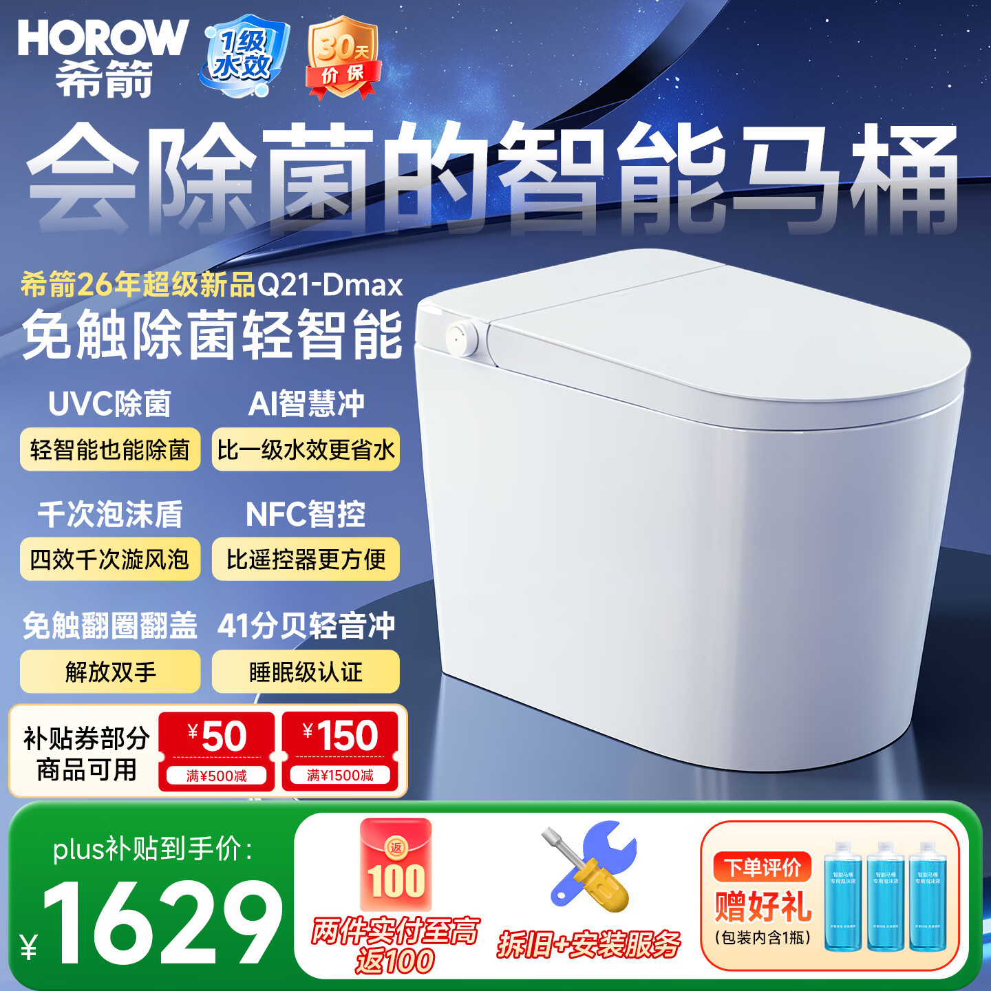 希箭(HOROW)【2026年新品】大冲力轻智能马桶脚感翻圈UVC除菌NFC泡沫盾Q21-D 【26年新品】Q21-D Max UVC陶瓷杀菌+NFC智控+Ai智慧冲 395以上坑距选400 400mm