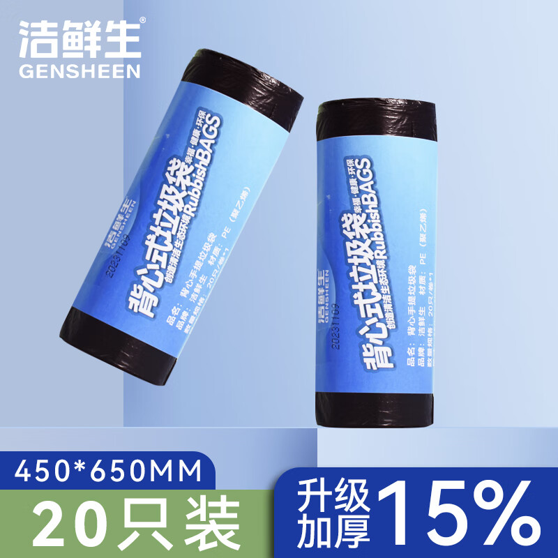 洁鲜生加厚加大背心手提式垃圾袋酒店塑料袋家用厨房办公室卫生间袋子 加大背心20只黑色