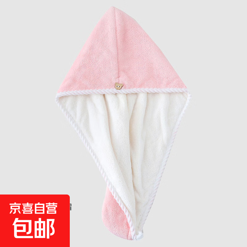 双色干发帽超强吸水速干帽新款可爱干发巾洗头发浴帽 粉白色 2条装