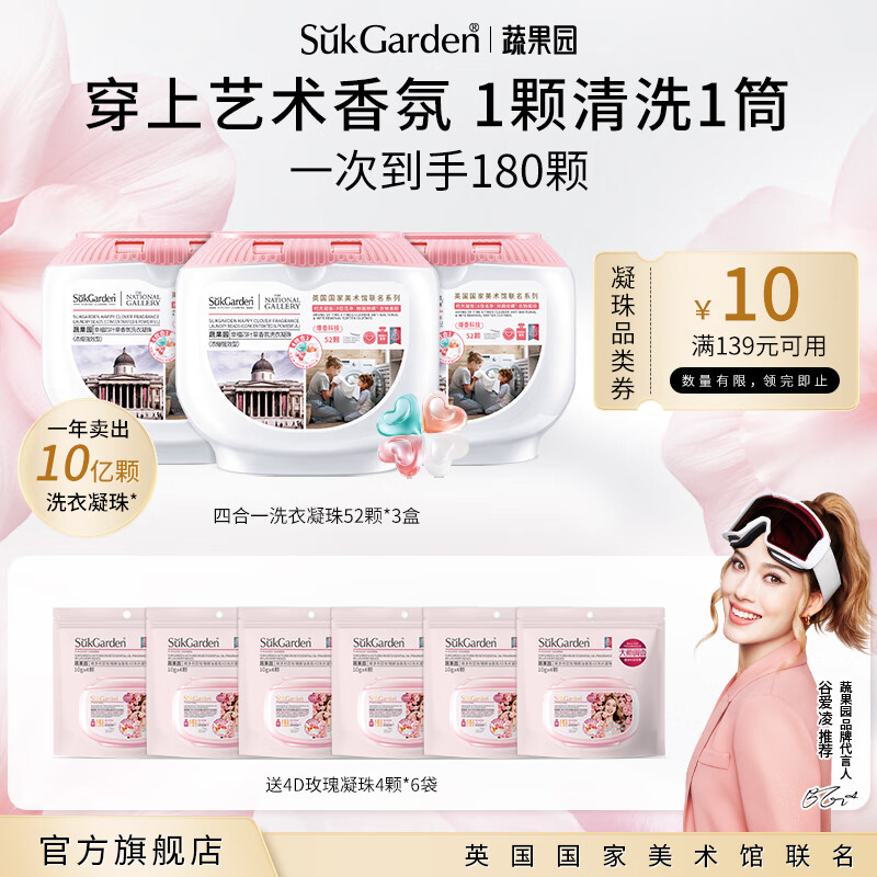 蔬果园四叶草香氛洗衣凝珠四合一除菌除螨持久留香柔顺洗衣液凝珠洗衣珠 【实惠囤货】洗衣凝珠180颗