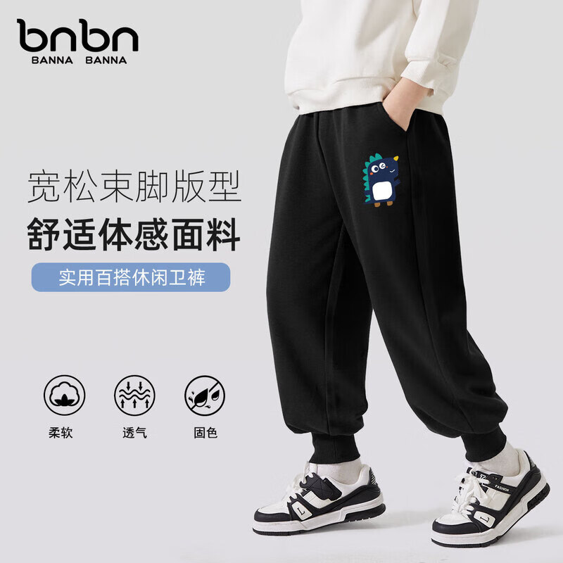 班纳班纳童装儿童卫衣套装2025新款秋季运动潮流宽松女童休闲裤男童上衣 N卡通龙K黑 130