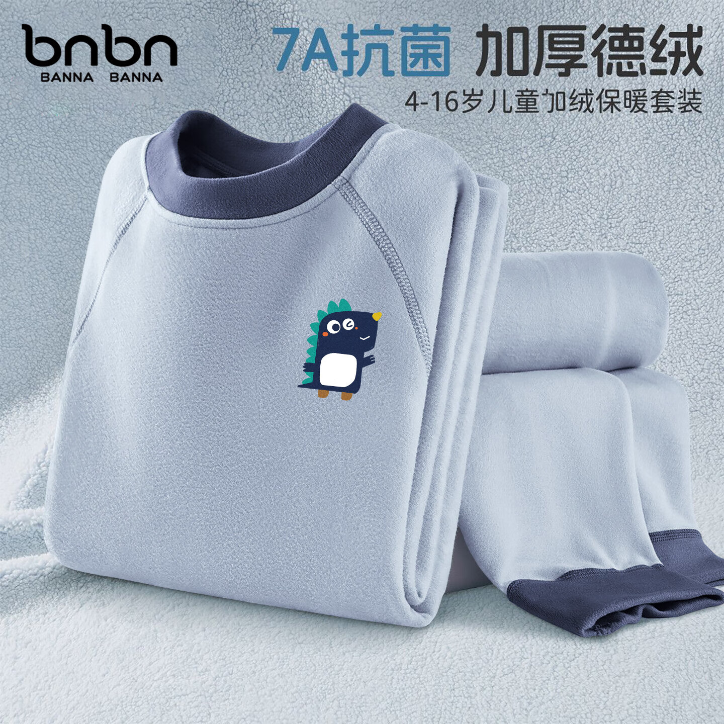 班纳班纳儿童睡衣德绒保暖2025新款男童秋衣秋裤套装冬季打底衫家居服 GT卡通龙K雾水蓝【男童】 140