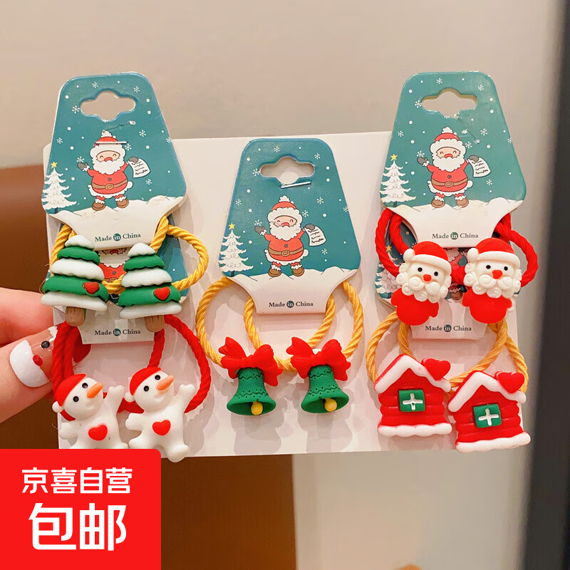 【10件套】圣诞节头饰儿童皮筋女孩卡通圣诞老人红色发绳头绳发饰 圣诞老人10件套