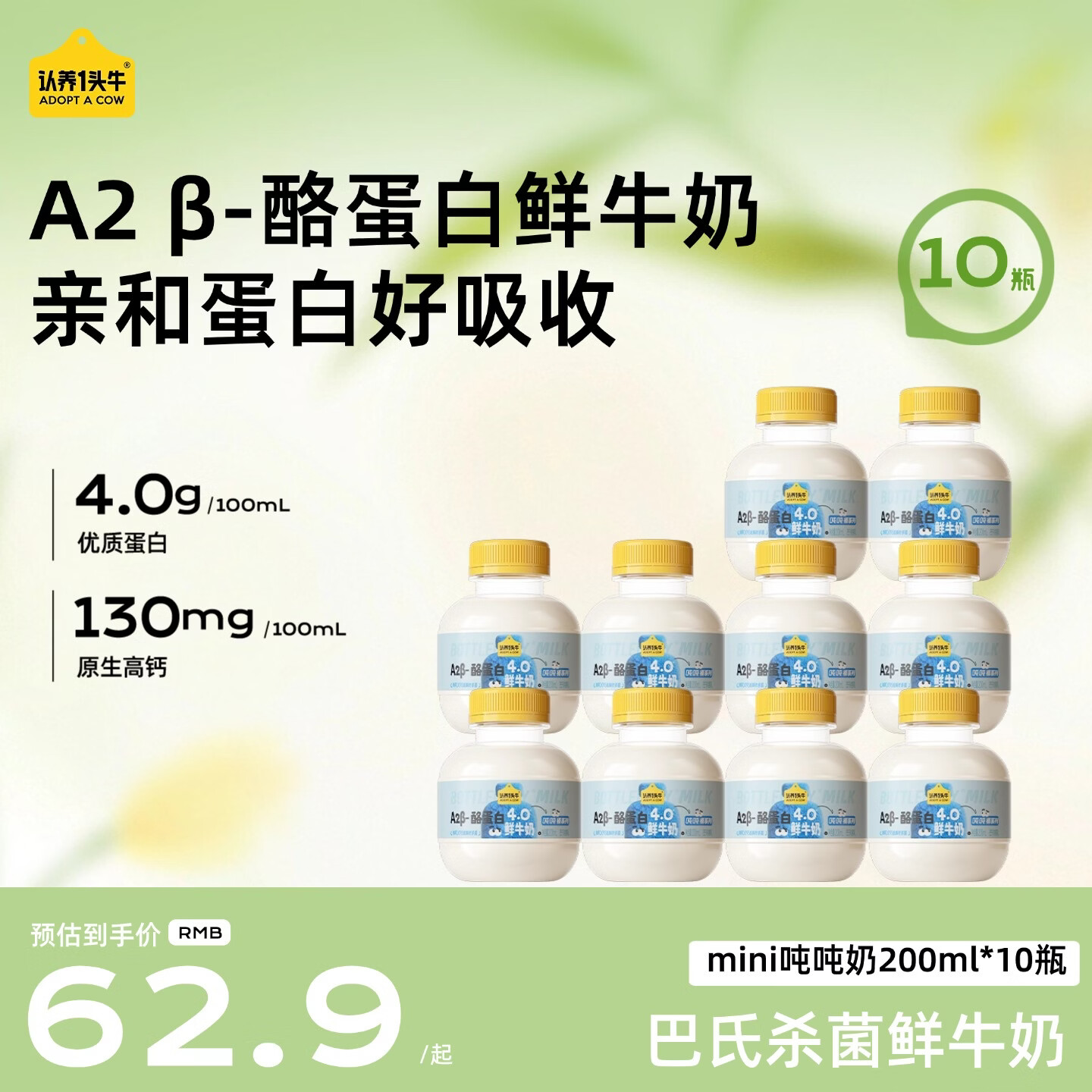 认养一头牛【代言人同款】mini吨吨奶A2β-酪蛋白4.0牛乳鲜牛奶营养儿童牛奶 mini吨吨200ml*10瓶