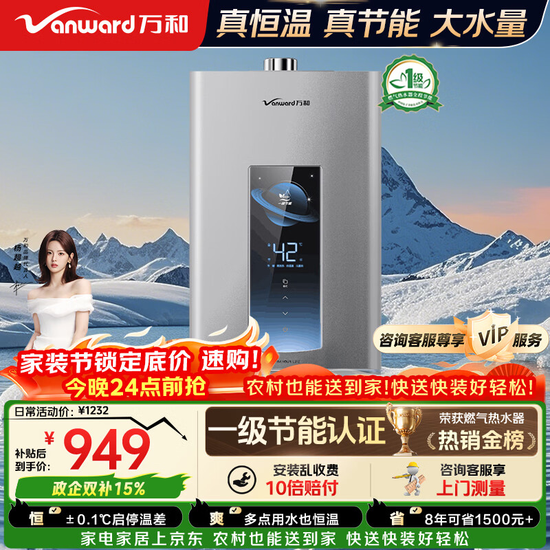 万和燃气热水器【ME5T13真节能认证】13升天然气 水气双伺服恒温 低水压启动