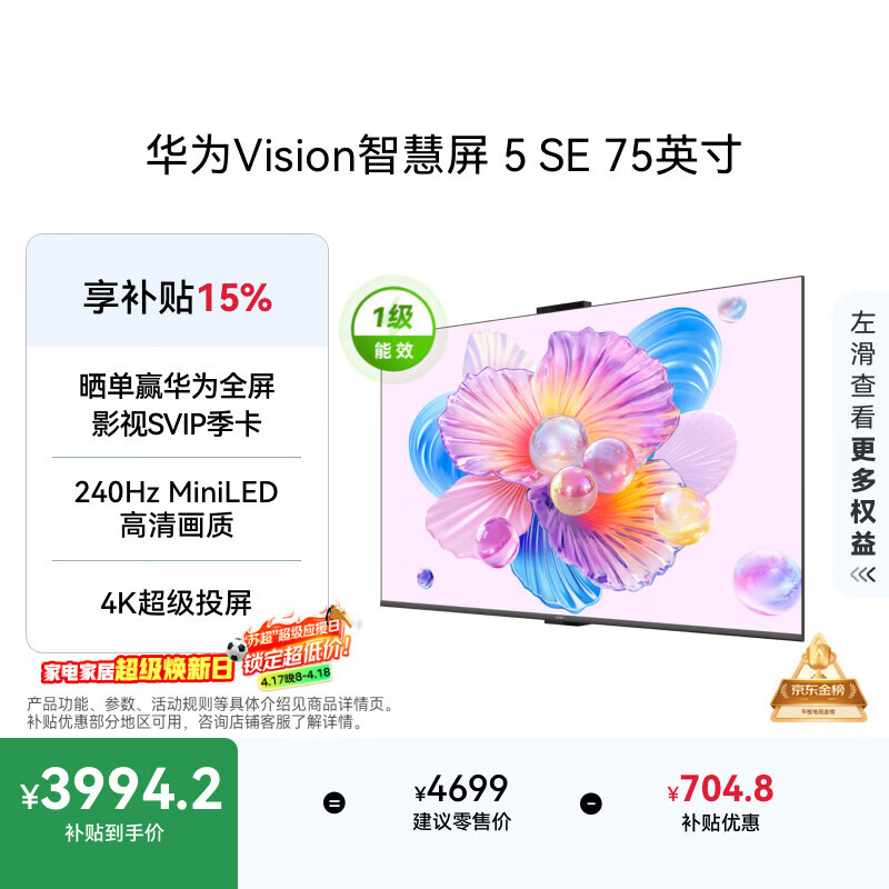 华为Vision智慧屏 5 SE 75英寸 鸿蒙AI搜片 一级能效国家补贴Pura 90 Pro投屏好搭档电视机