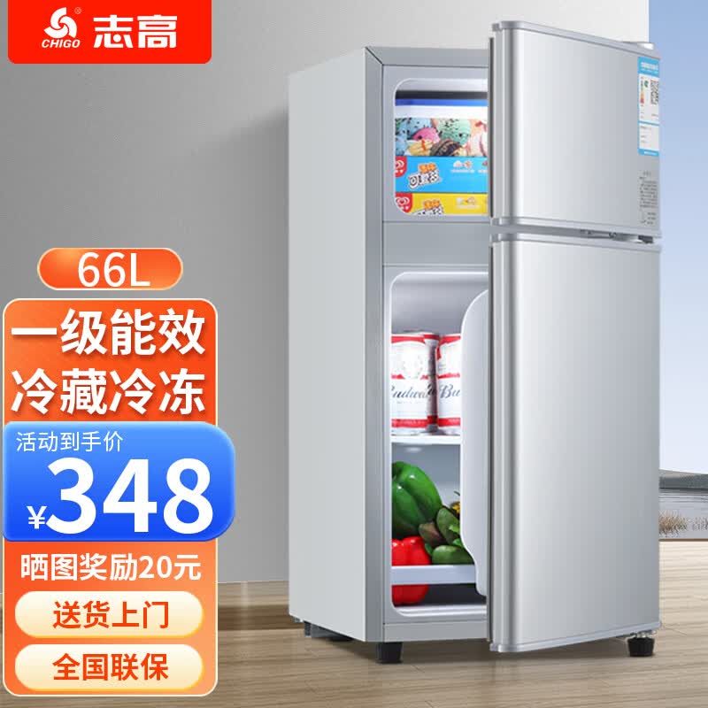 志高(CHIGO)小冰箱迷你小型家用冷藏冷冻两用宿舍出租房用双门办公室电冰箱节能省电 【一级能效】66L银色【全国联保丨节能省电】