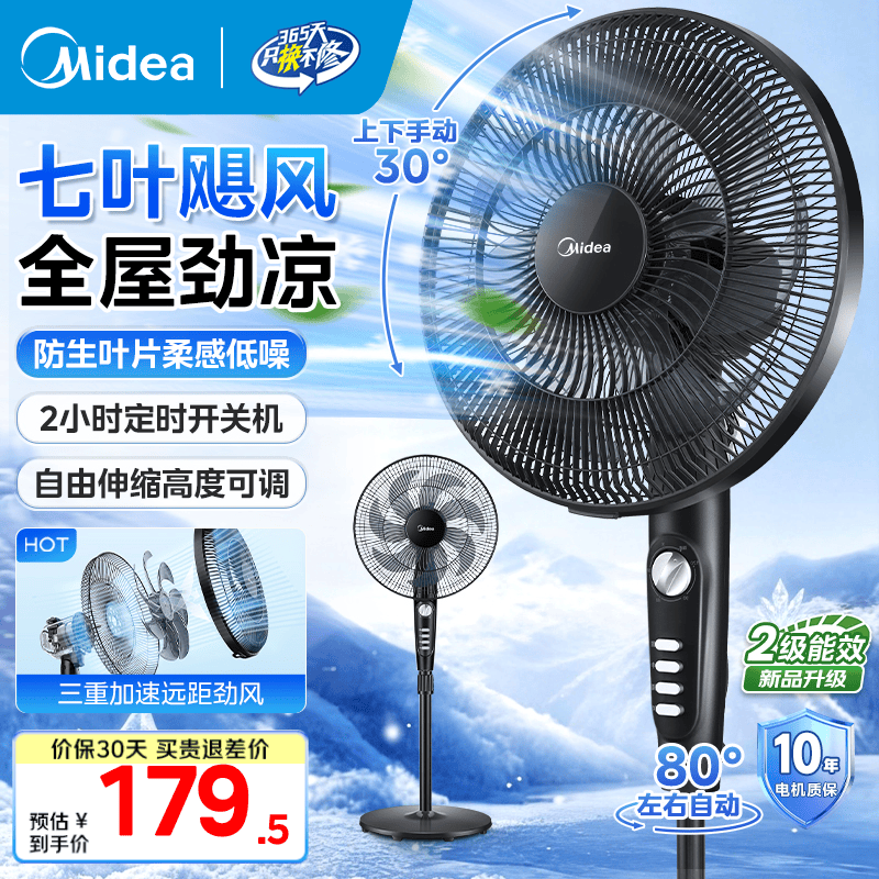 美的(Midea)电风扇落地扇家用大风量 远距离强风送凉电电扇 立式落地风扇家用卧室客厅办公 可选升级2级能效 【按键新品】2级能效35MA1