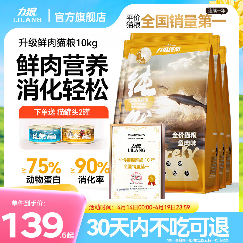 力狼猫粮 成猫幼猫通用型天然粮 【美毛护胃-更划算】鲜鸡鱼乳鸽10kg