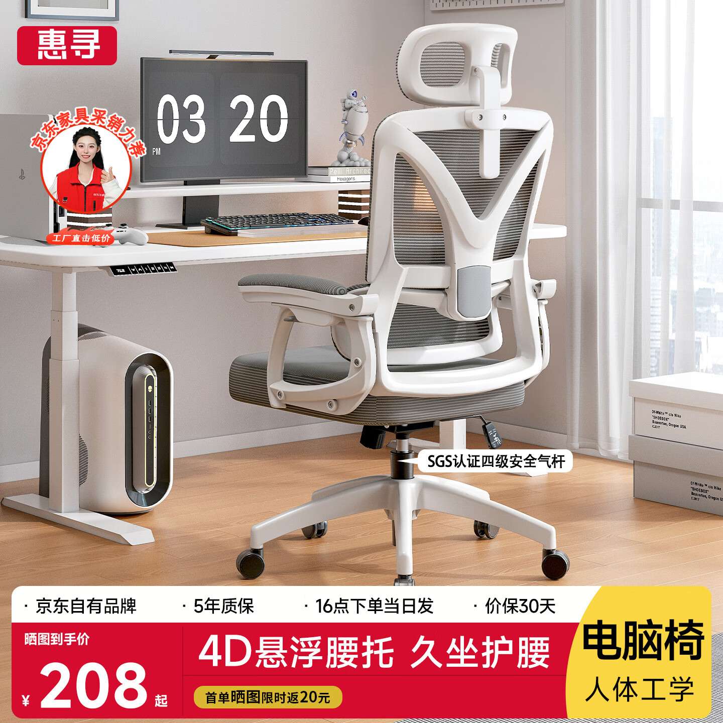 惠寻电脑椅电竞椅子人体工学游戏人工力学座椅久坐宿舍学习可躺办公椅 【Pro焕新】悬浮撵腰+4级气杆+白框灰