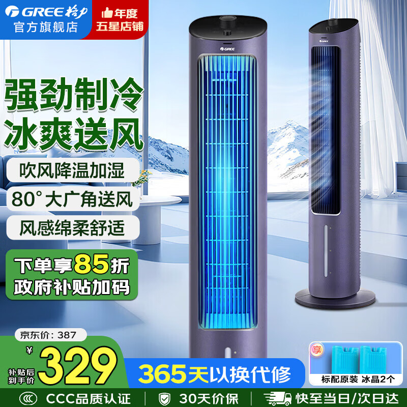 格力(GREE)空调扇家用冷风扇客厅卧室办公加湿冷风机节能制冷塔扇移动小空调扇省电单水冷落地扇冷风循环风扇 【极光紫】强劲冷风空调扇KS-04S65g