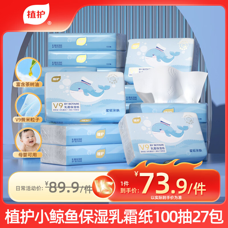 植护乳霜纸3层*100抽*27大包婴儿保湿绒柔纸巾护鼻云柔抽纸鼻炎擦鼻涕