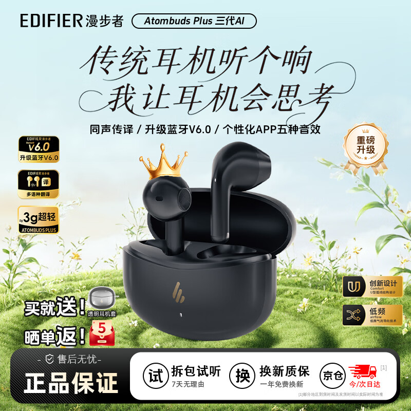 漫步者(EDIFIER)AtomBuds真无线蓝牙耳机半入耳式 原子豆Plus花再降噪通话音乐运动低延迟游戏 超长续航 节日礼物 Plus焕新版-暮灰