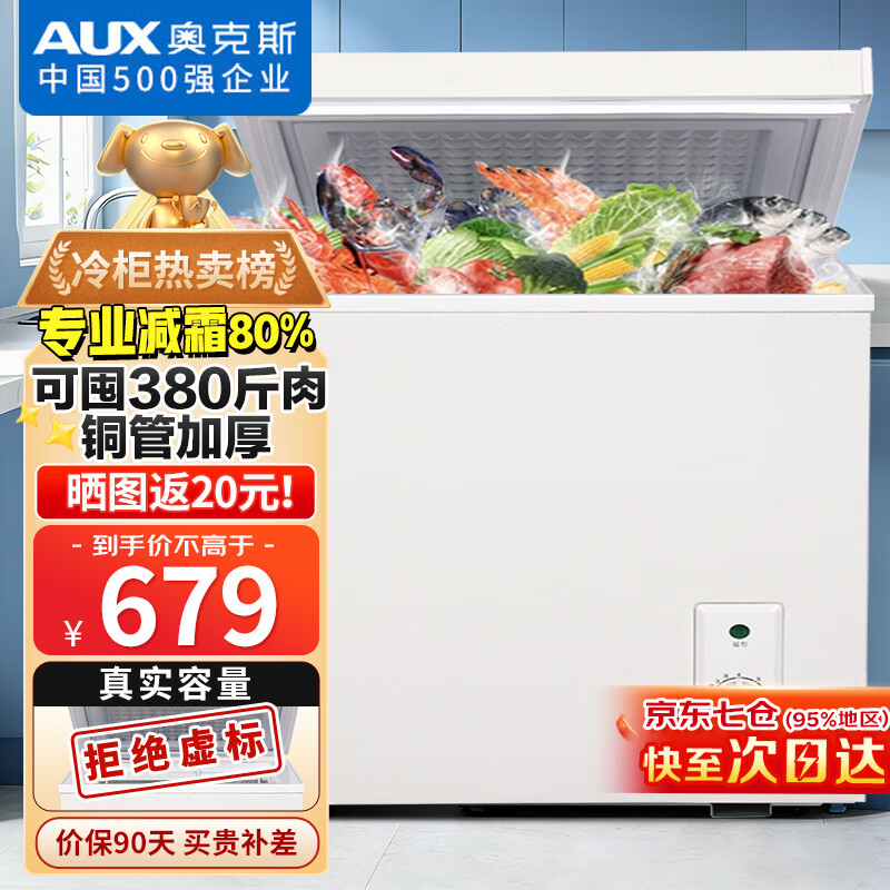奥克斯(AUX)小冰柜家用小型冷藏柜冷冻柜两用冰柜小型租房家用小冰箱小型冷柜 铜管/246升级/可囤380斤肉/减霜 200L