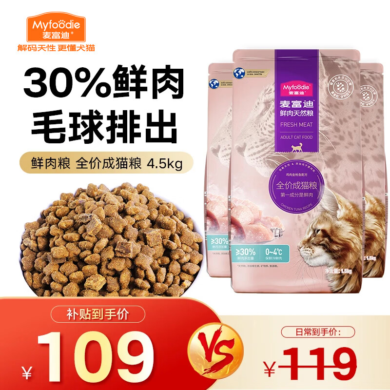 麦富迪 猫粮 鲜肉双拼全价天然粮鸡肉金枪鱼配方 成猫粮4.5kg