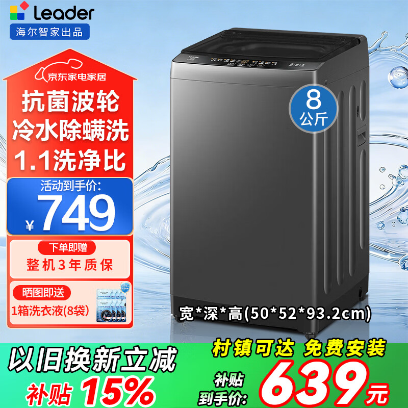 Haier海尔洗衣机全自动波轮10公斤直驱变频洗衣机国家补贴一级能效双动力防缠绕大神童除菌 海尔统帅 【品质首选】8kg冷水除螨+1键速洗+智能称重 波轮