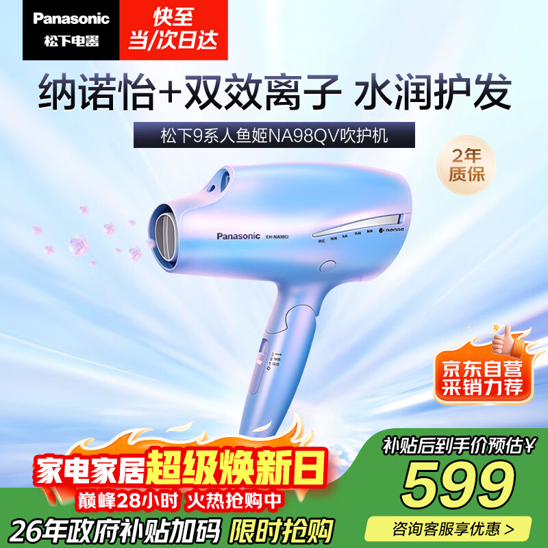 松下(Panasonic)人鱼姬负离子电吹风机筒家用速干纳诺怡护发送女友生日礼物EH-NA98QV