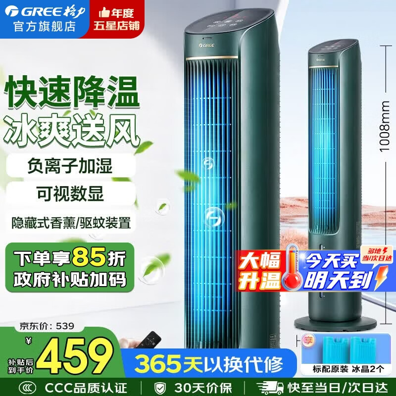 格力(GREE)空调扇家用冷风扇智能遥控制冷塔扇负离子小空调扇客厅卧室办公加湿水冷风机节能省电落地扇循环扇 【升级负离子加湿香薰空调扇】KS-04S62Dg