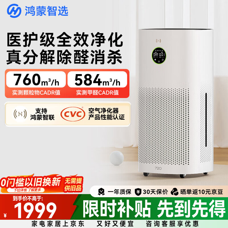鸿蒙智选720空气净化器3增强版 除甲醛新房专用除烟味除花粉过敏原宠物猫毛家用 支持华为智慧生活
