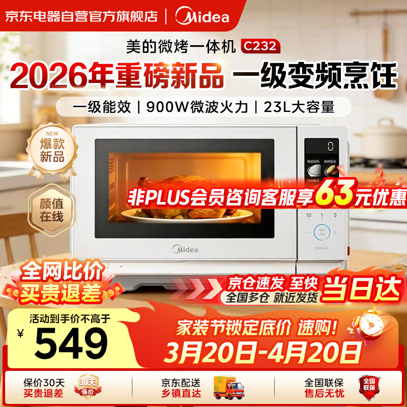 美的(Midea)【26年重磅新品】微波炉家用变频一级能效微烤多功能一体机23L大容量微波炉C232