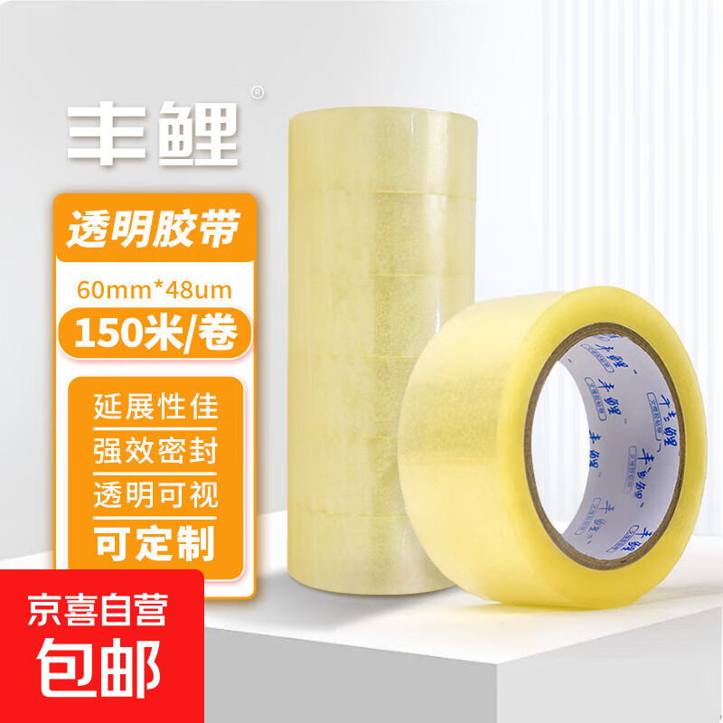 【断货王】高粘度加厚透明胶带快递打包胶带封口胶布封箱大卷胶带 透明胶带60mm*150米 3卷