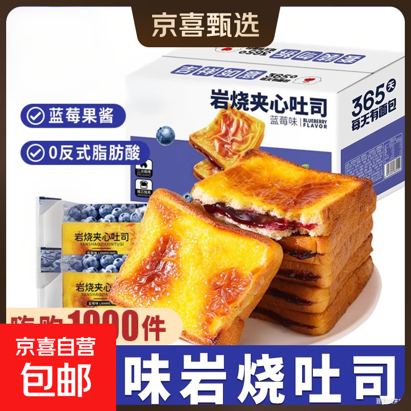 泓一岩烧蓝莓吐司面包300g 60g/包 早餐面包代餐饱腹休闲零食品 岩烧吐司蓝莓味300g*4