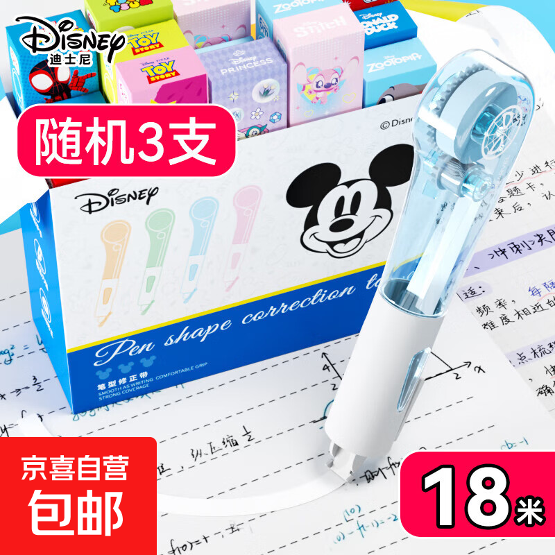 大容量修正带高颜值小学生用涂改带改正迷你小型修改带实惠装改字带学生多功能男孩女孩改正带 迪士尼(Disney)笔型修正带3支 18米