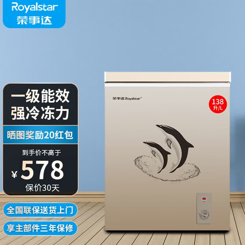 荣事达(Royalstar)小冰柜家用小型冷冻保鲜迷你冷藏商用卧式冷柜单用储母乳柜节能省电 【一级节能 全国联保】微霜款 138L