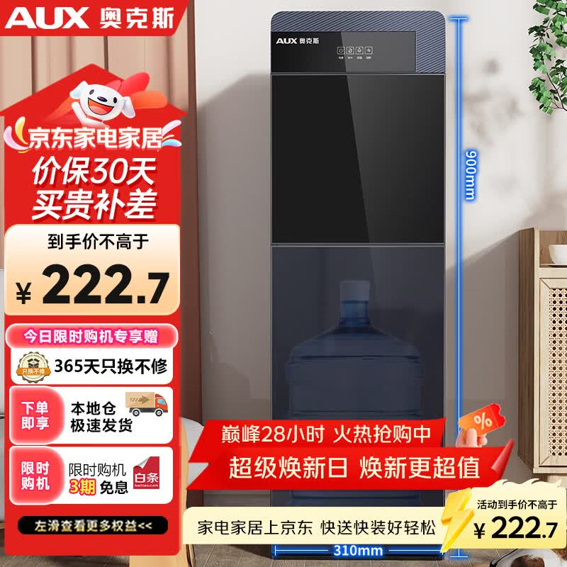 奥克斯(AUX)饮水机冲奶下置式家用立式温热型快速加热下置水桶饮水器YR-5-X-26【蓝色】