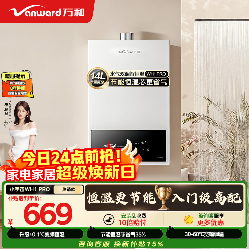 万和【WH1 PRO 14L】优于13L天然气水气双调恒温 低水压启动 节能省气 上门安装14WH1PRO燃气热水器