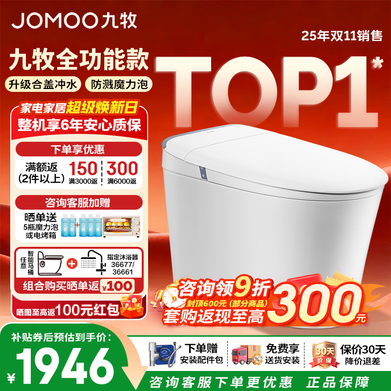 九牧8650智能马桶一体机全自动虹吸式恒温抗菌坐便器轻智能无水压限制 【2025重磅新品】全功能丨魔力泡 400坑距(390以上选择)